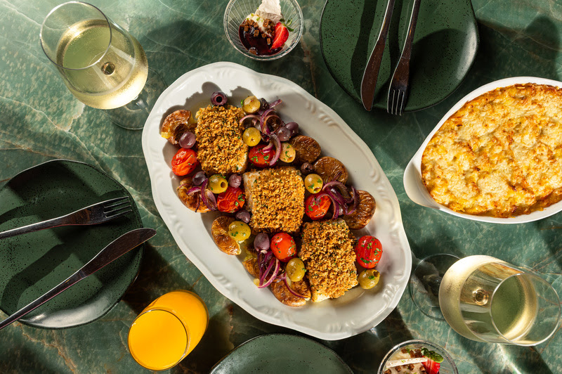 O cardápio inclui peixes e frutos do mar. Massas e saladas também estão presentes. Por outro lado, respeita a tradição da data.