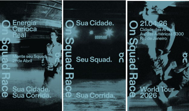 Estreia carioca do evento global   A marca suíça de esportivos On realiza, pela primeira vez no Brasil, o Squad Race Rio, terceira edição do circuito global de corrida de revezamento. O evento será na Cidade das Artes, em Barra da Tijuca, Rio de Janeiro, dia 21 de abril de 2026.