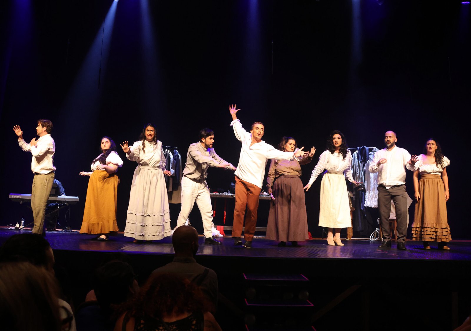 A produção utiliza figurinos de época e música ao vivo. A iluminação também é criada em cena. Assim, o público vivencia uma atmosfera imersiva.